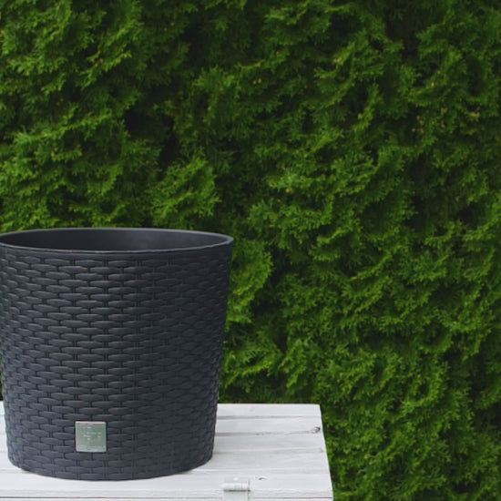 Intelligentes Entwässerungssystem - Die Töpfe in den Größen 25 cm, 30 cm und 40 cm verfügen über eine vorbereitete Stelle zum Durchbohren am Boden. Dies ermöglicht das Ablaufen von überschüssigem Wasser bei der Nutzung im Freien. Der Gummistopfen hat eine clevere, spezielle Halterung direkt neben der Öffnung, damit er nicht verloren geht. Wenn Sie den Topf im Winter ins Haus holen, verschließen Sie einfach die Öffnung.