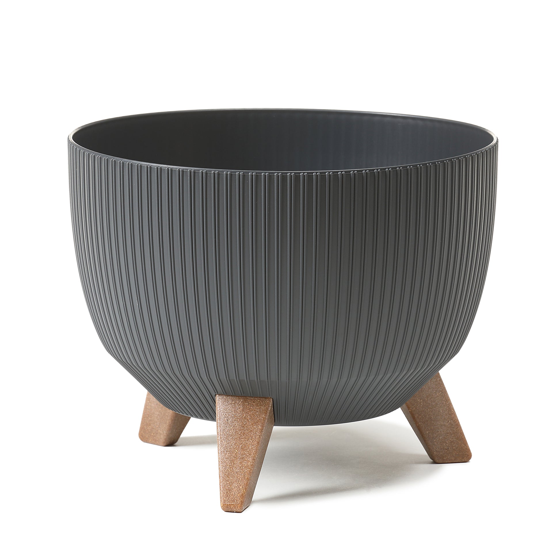 Happy Flower Blumentopf mit Füßen – moderner Pflanzkübel in Streifen-Optik aus Kunststoff mit Recyclinganteil