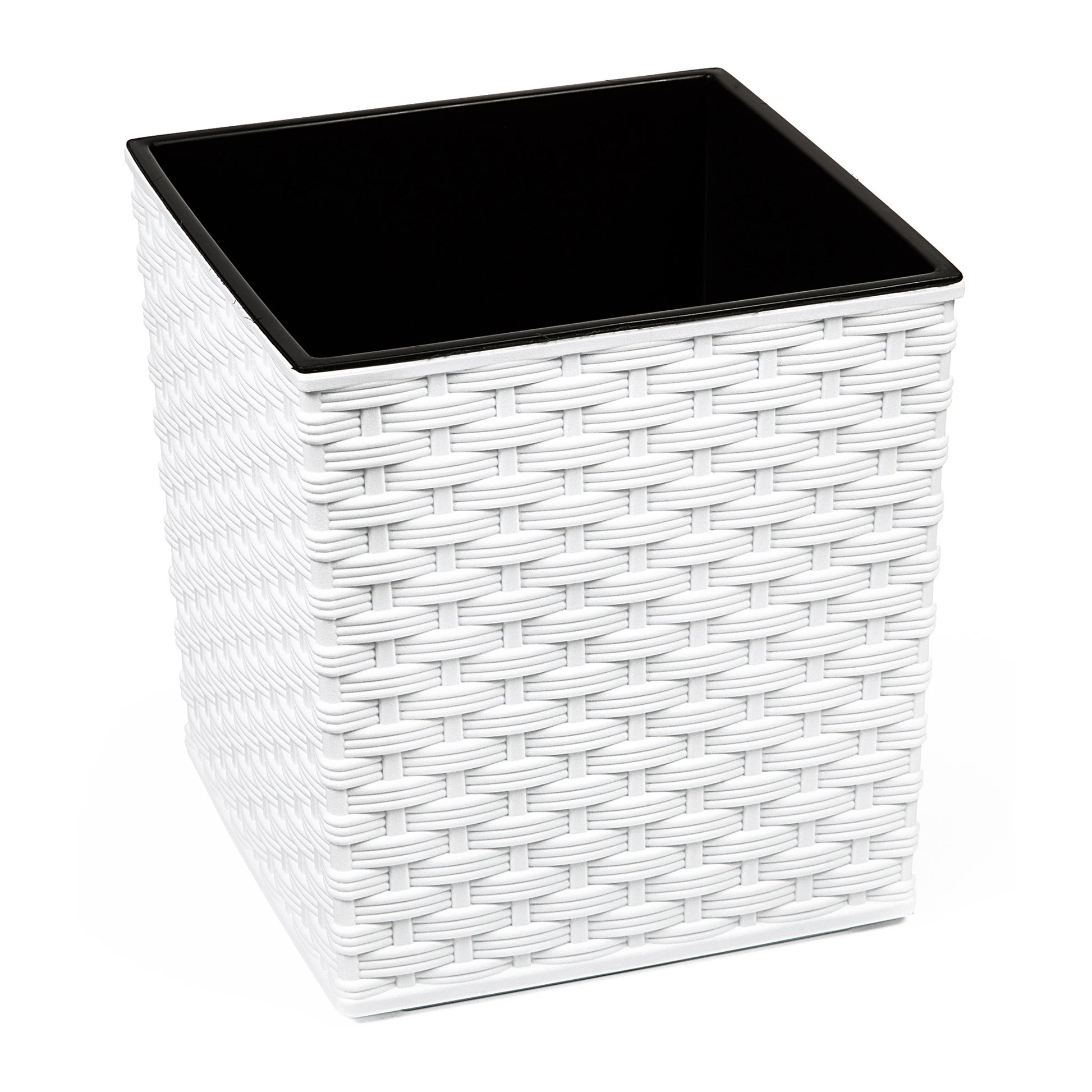 Der Topf besteht aus hochwertigem, UV-beständigem Kunststoff mit strukturierter Rattan-Oberfläche. Der Inneneinsatz ist schwarz und aus dem gleichen Material gefertigt.